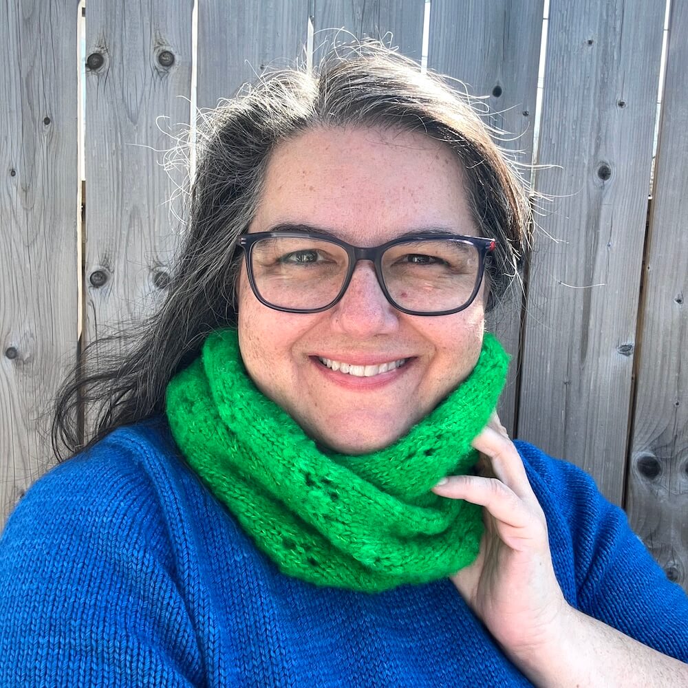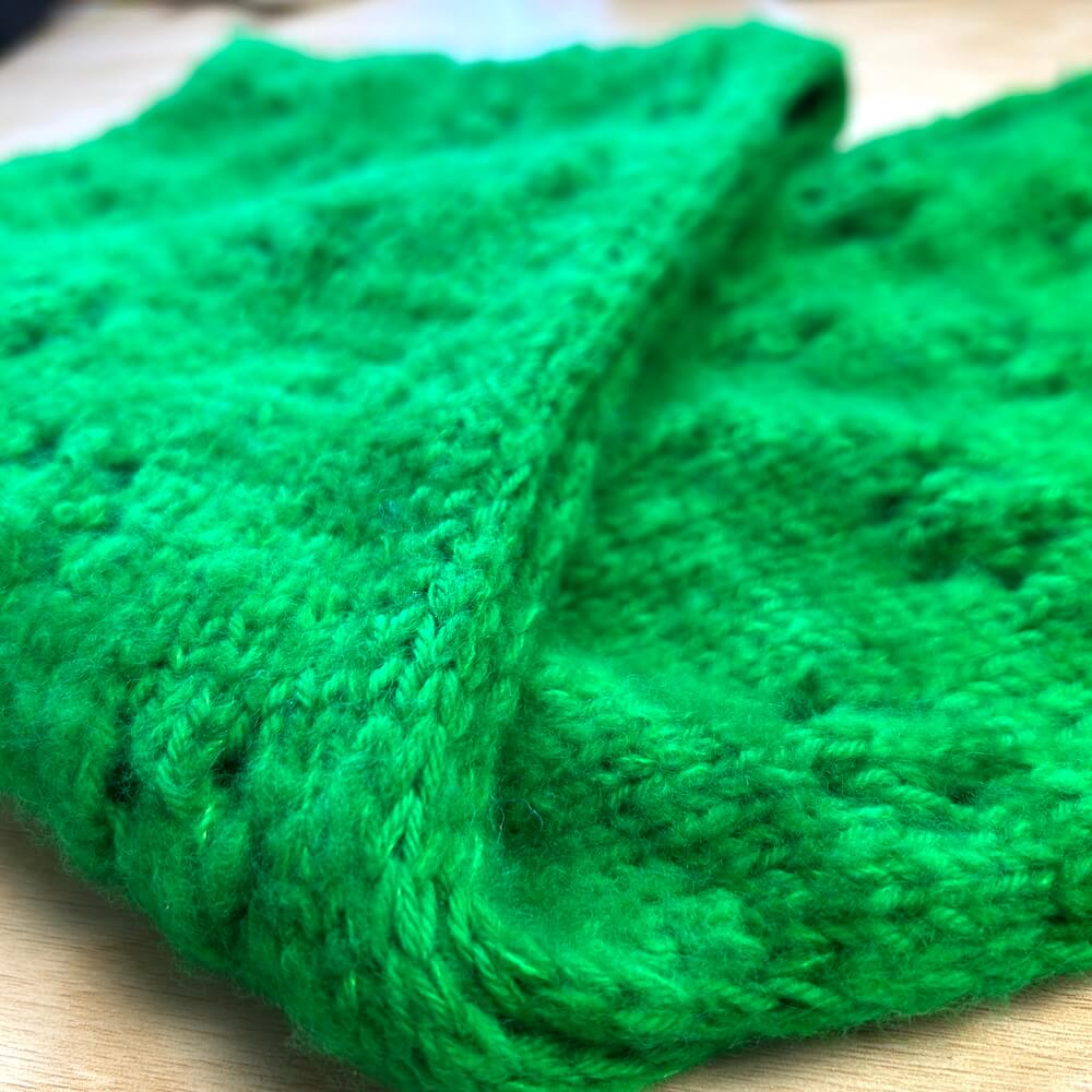 The Blooming Cowl is an experiment to try a brushed merino yarn (something I had never used before – and it’s not the same as a brushed mohair!). The brushed merino adds a bit of a halo and some added texture to the fabric of the cowl (and it’s super soft!).