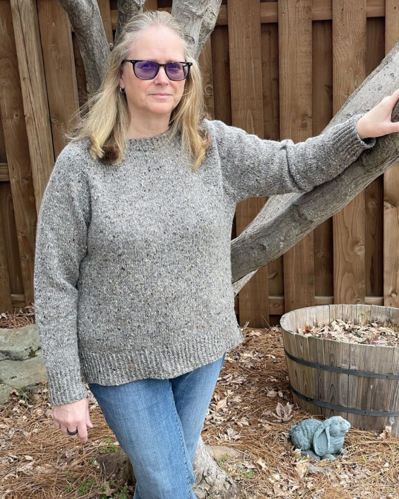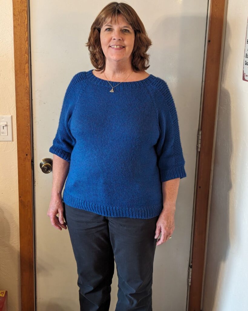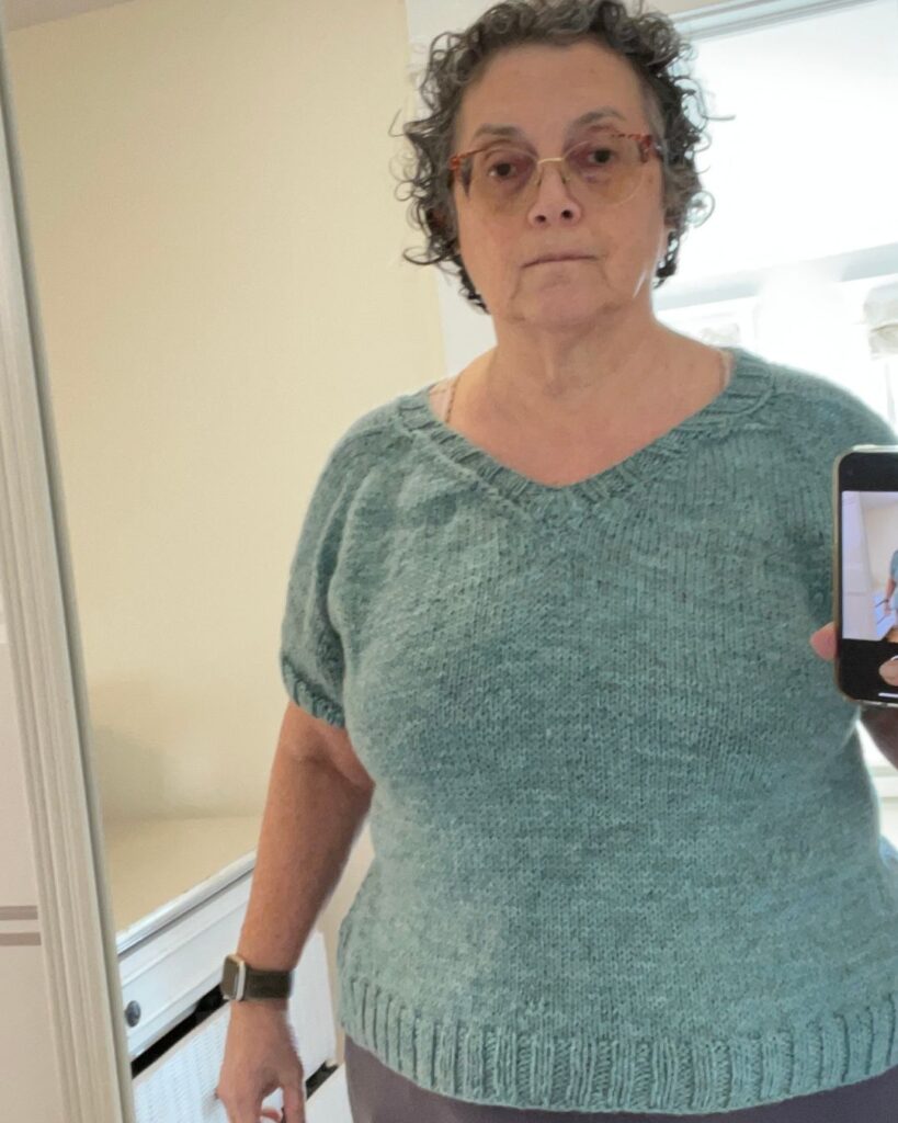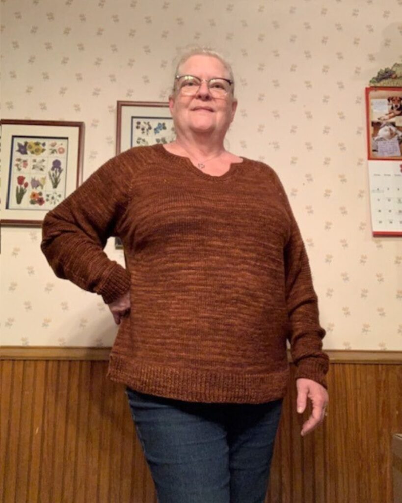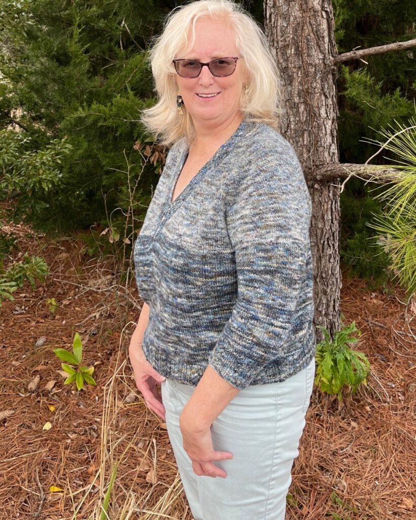 “As an older woman with a large chest I kept choosing the incorrect size and would end up with sweaters that were too big across my shoulders and armpits. This course taught me how to choose the correct size then make the adjustments for my chest and other areas. I ended up with a great fitting sweater that I am proud to wear.”